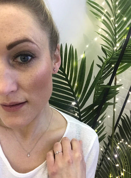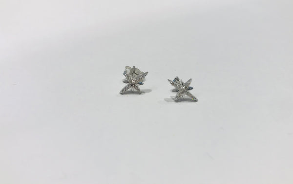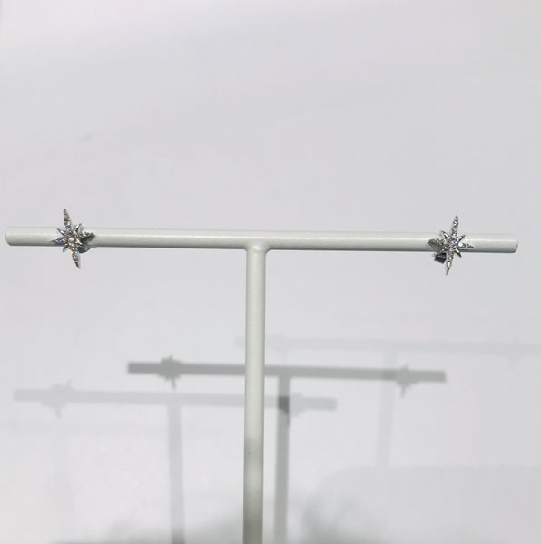 CELINE DAOUST 14K WHITE GOLD NORTH STAR STUD EARRINGS WITH PAVE DIAMONDS.
