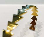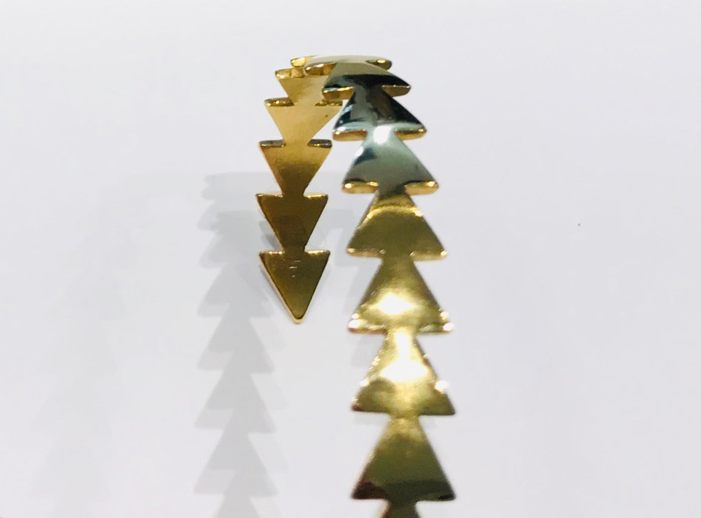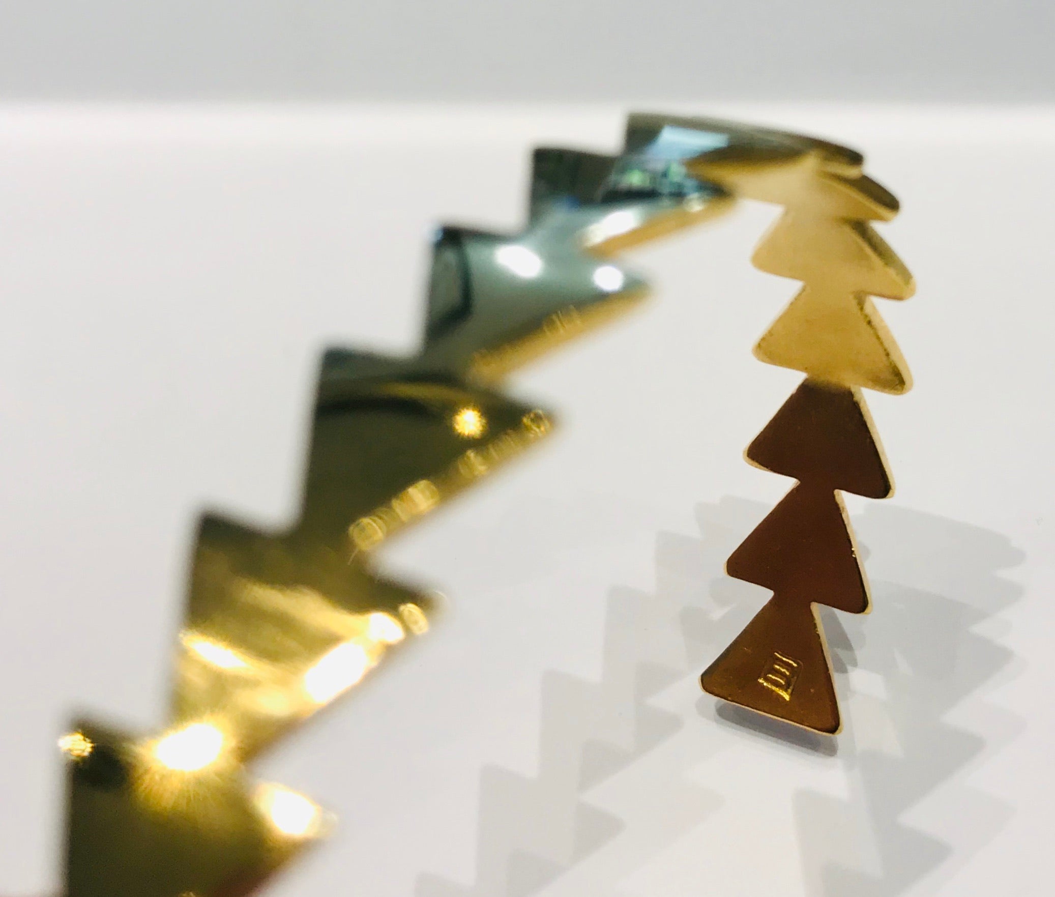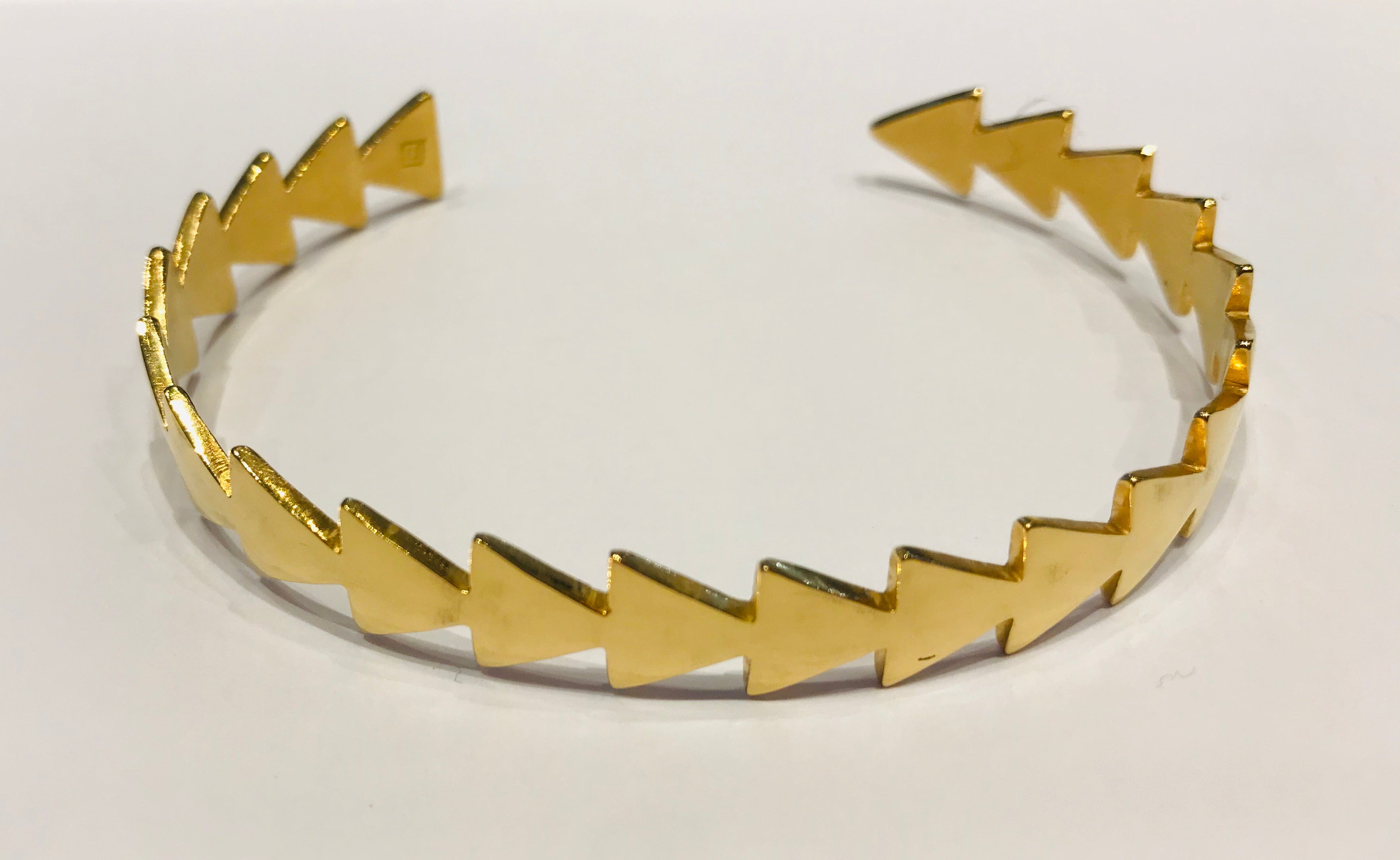 This rigid goldplated bracelet consists of several arrows in a row. Size: 17cm, opening 3,5cm
