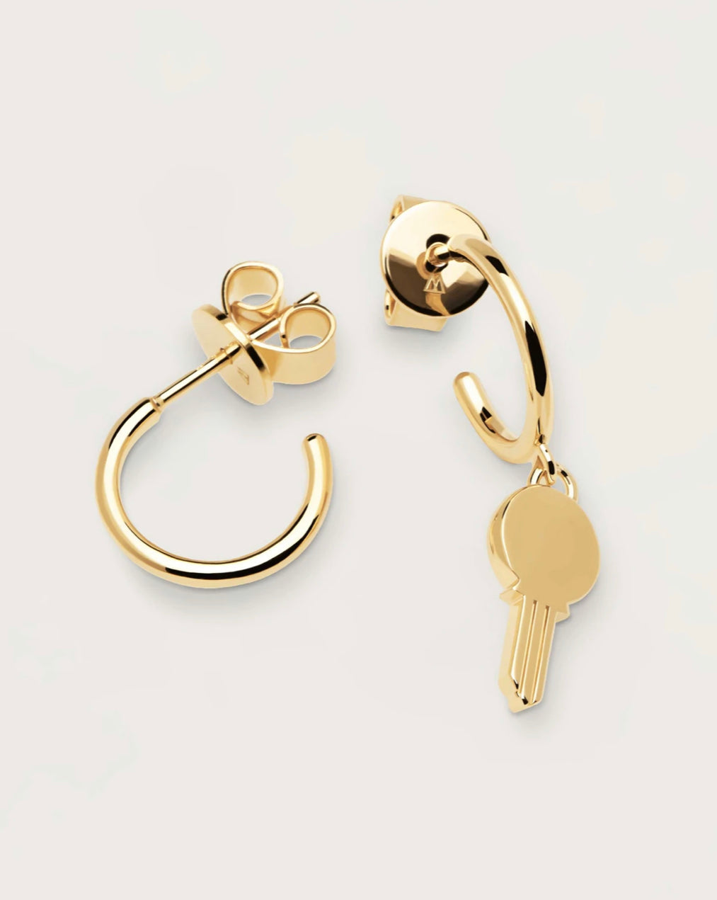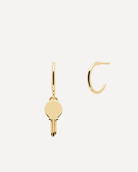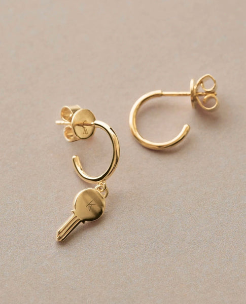 The Eternum gold earrings are the symbol of strong attachments. Carefully polished 925 Sterling Silver plated in 18k Gold, the signature of the design is a key charm. A design made for the unbreakable human ties. Let your imagination flow and make it one of a kind with words of love, kindness and loyalty or let us inspire you with our already designed quotes and symbols.