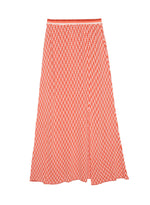 The lorenzo skirt by Maison Anje is a long A-line style skirt with deep slit giving movement and elasticated waist in contrast stripe for comfort and shape.