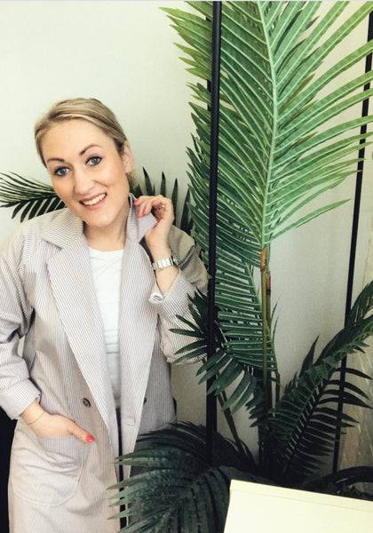 Dutchess sumi coat is a white black striped coat. Ideal to wear for spring or summer.