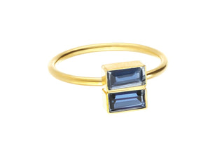 Eye catching gold plated silver situ ring 01 with two topaz gems by Lore Van Keer. Handmade in her atelier in Belgium.