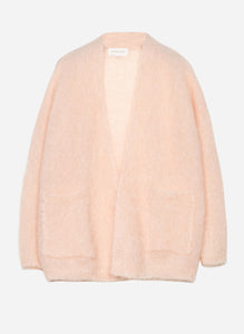 The Maison Anje casual, comfy macaron light pink cardigan has two front pockets and a regular, straight fit.