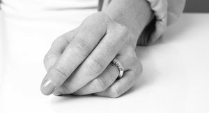 This ring is an ode to and a permanent reminder of that loved one who is always in the back of your mind. Think about them at small moments during the day.The ring can be personalised with one or more names or initials. The craftwork is sleek and modern, yet detailed.