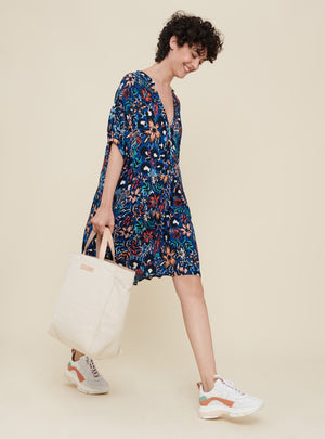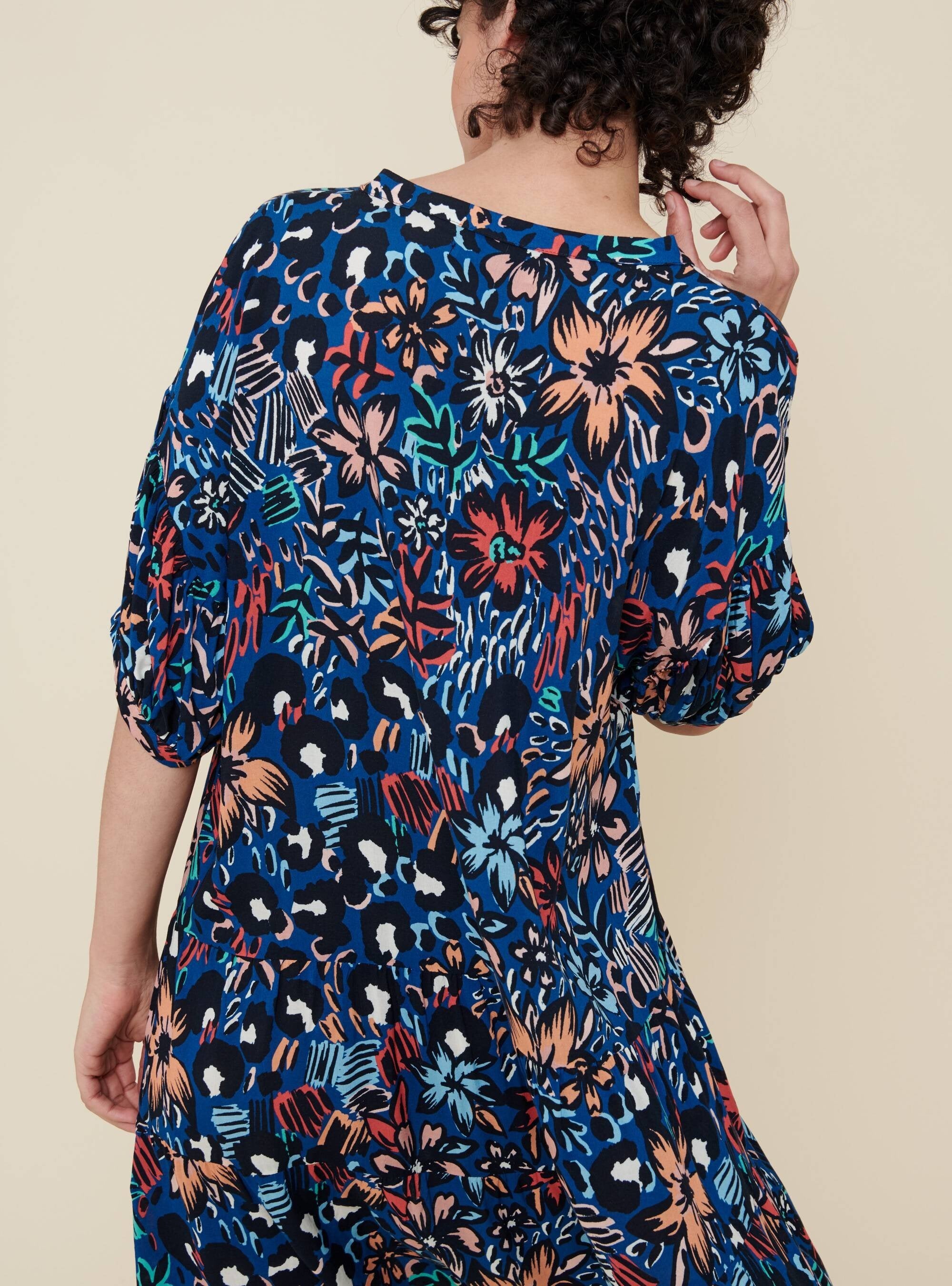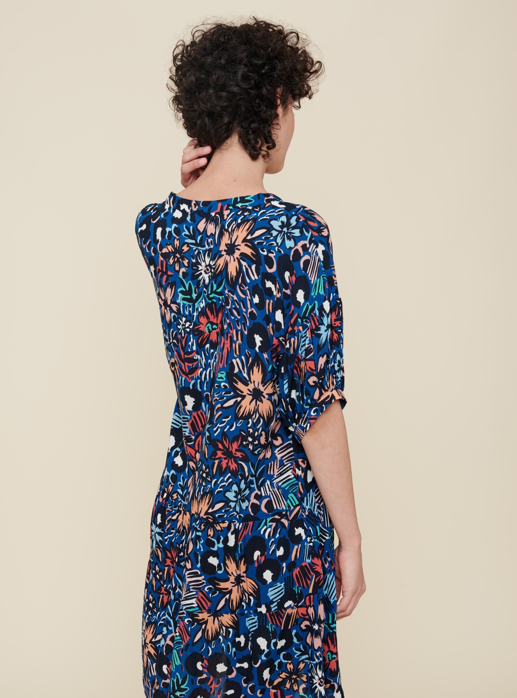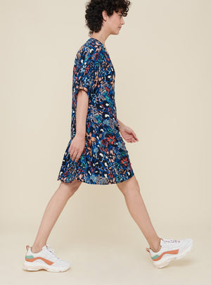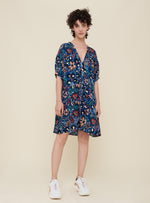 The cut of this dress and the colourful print make this dress the star of summer. The dress has balloon sleeves, V-neck and cropped waist.