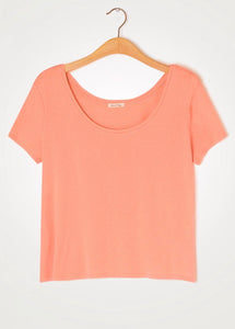 SHORT SLEEVES BOAT NECK STRAIGHT T-SHIRT.