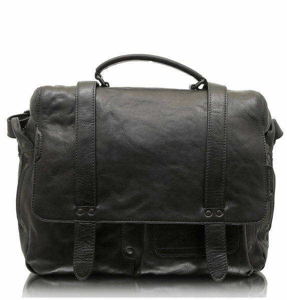 - Leather logo flag with embossed logo on flap