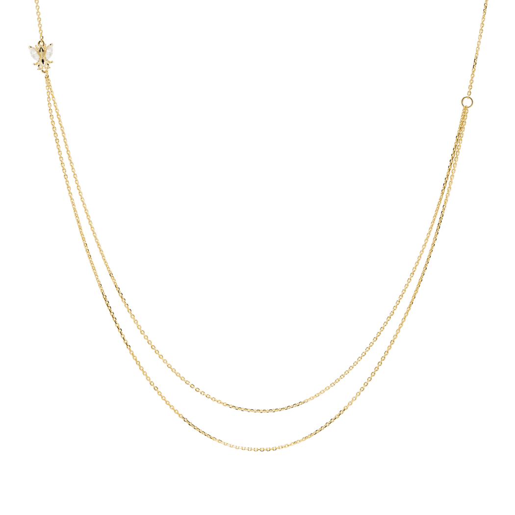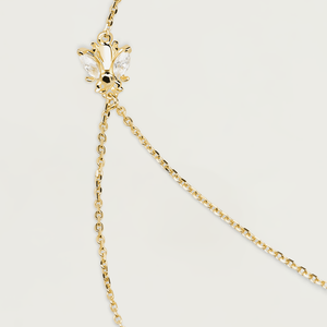 Zaza collection is inspired by the virtuous flying crawlies that keep nature in constant bloom. The subtle beauty and fragility of small insects is captured in Crystals over Green Mother of Pearl which allude to the rapidly flapping wings and the iridescence of wild insect bodies. Meanwhile, delicate white zirconias sit as a subtle ornamental detail over 925 Silver and an 18K Gold plating, evoking the centre of life in constant movement.