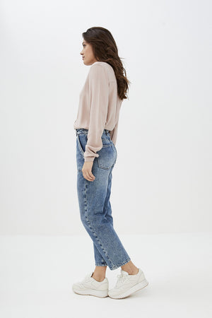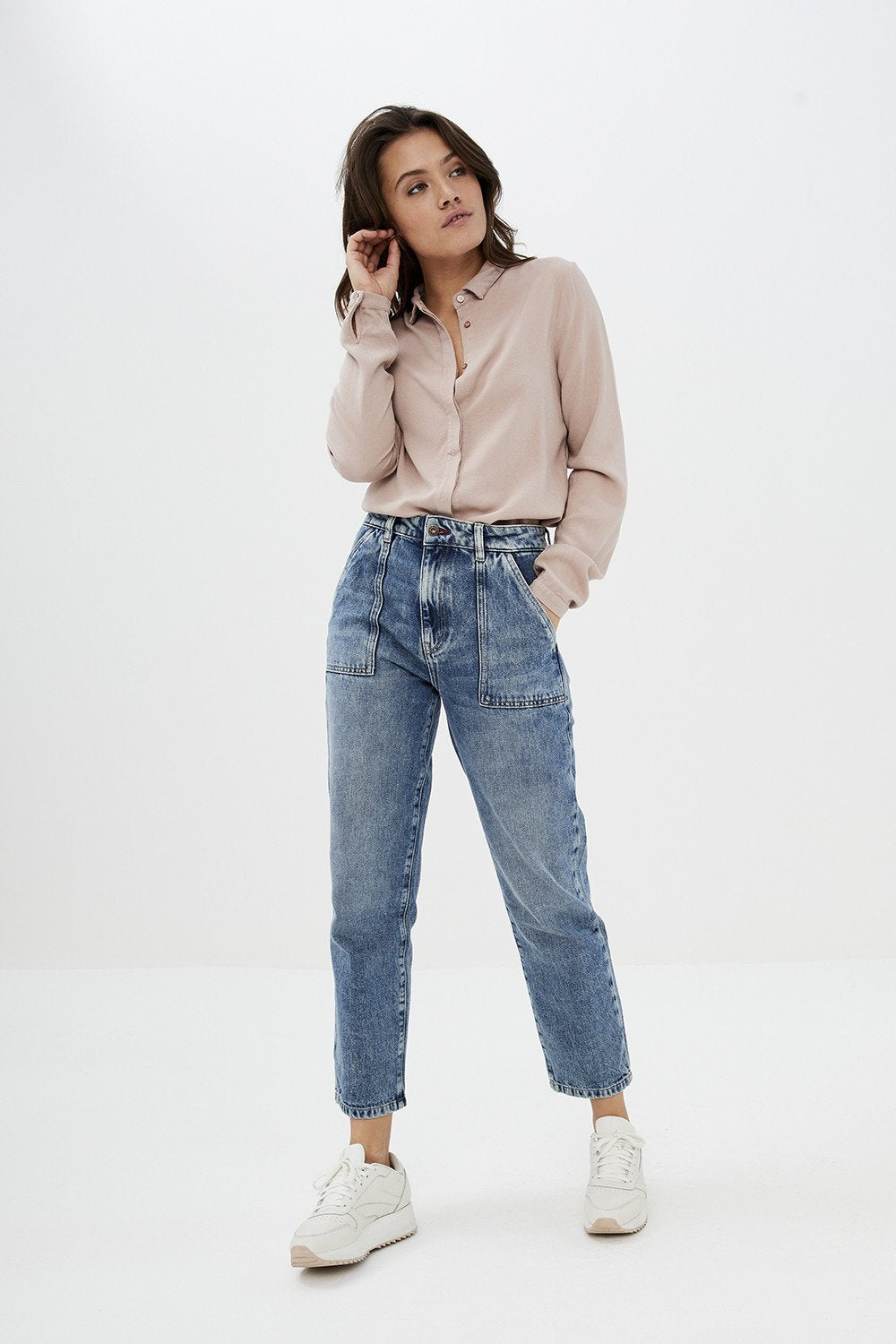 De jonna blouse neblina is een luchtig exemplaar gemaakt van een rijke viscose. De blouse is voorzien van een verborgen knoopsluiting op de voorzijde en heeft een knoopsluiting op de mouwen. Dit in combinatie met het kraagje en de plooi op de achterzijde geven de blouse een klassieke uitstraling. Daarnaast valt de blouse aan de achterkant langer dan aan de voorkant. Een blouse om eindeloos te combineren.