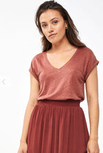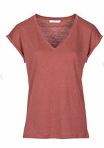 De mila top linen is vervaardigd uit een mooie kwaliteit linnen. De top heeft een kleine kapmouw, is licht gemêleerd en is voorzien van een vrouwelijke doch sportieve v-halslijn.