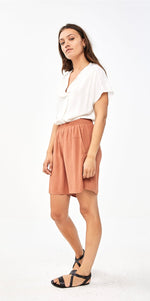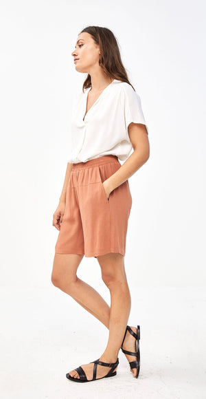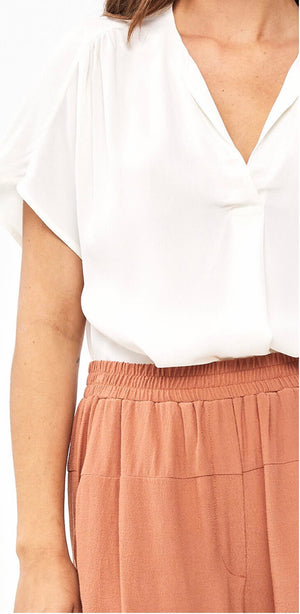 De moon crepe blouse is een van onze favorieten deze zomer. De top is gemaakt van een rijke viscose kwaliteit en heeft een korte mouw en vrouwelijke v-halslijn. De schouderpas is aan de voorkant voorzien van plooitjes wat zorgt voor een speels effect. Ook zit er onder de v-hals een plooi, de blouse is hierdoor mooi ruimvallend.