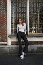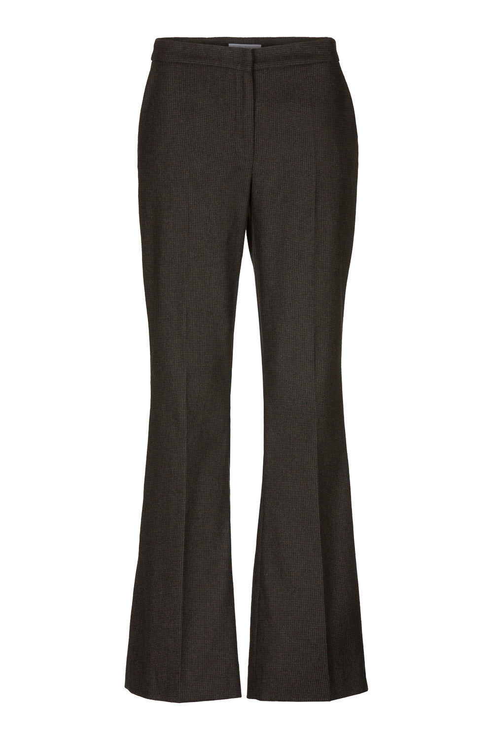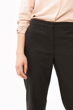 De comfortabele ro small check pant is gemaakt uit een stretchy katoen kwaliteit gecombineerd met wol. De broek sluit mooi aan en is voorzien van steekzakken, daarnaast heeft de pantalon een naad op de voorkant wat een nette uitstraling geeft. Deze pantalon heeft licht uitlopende pijpen en een gestreepte structuur. De broek sluit met een rits en een haak-en oogsluiting.