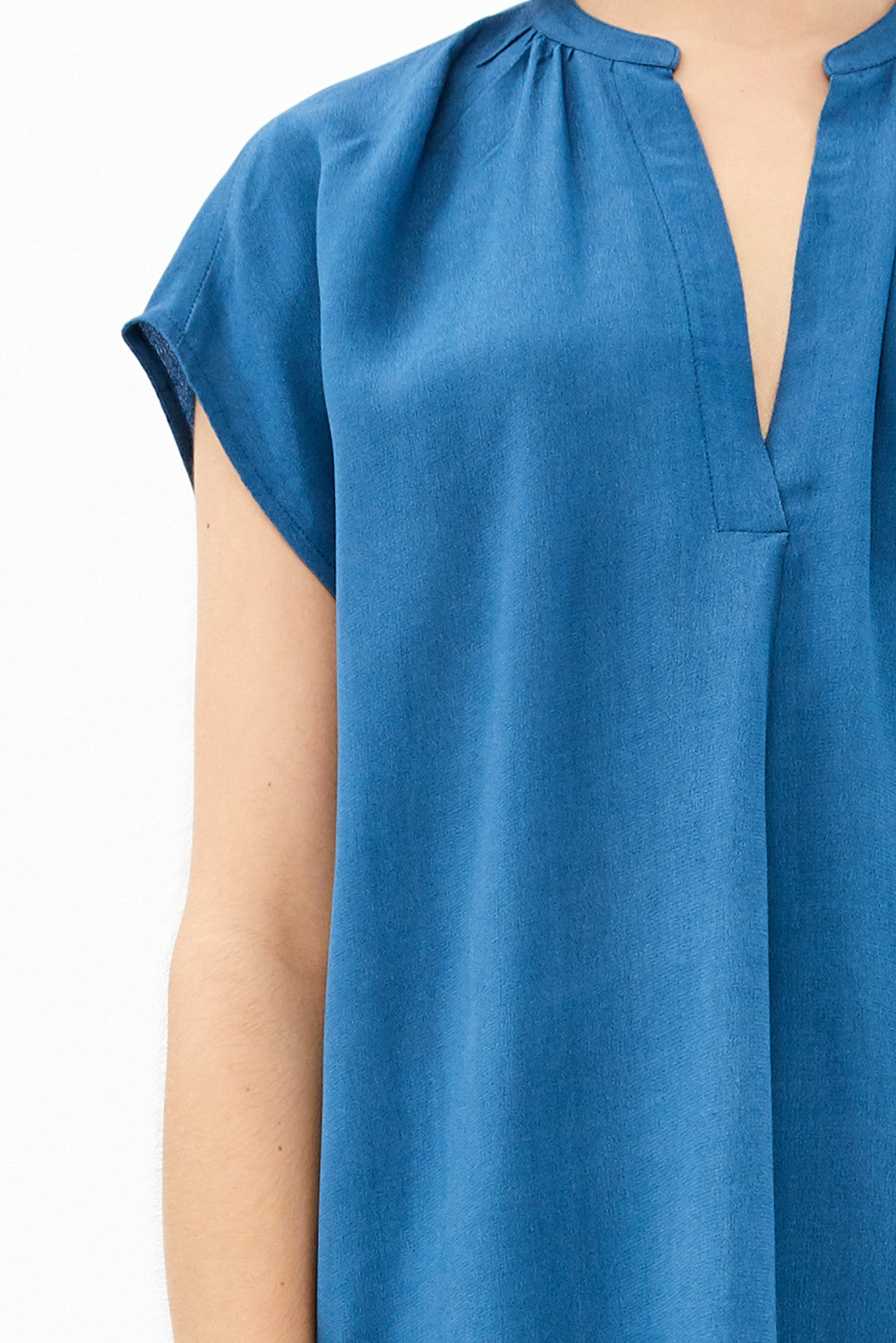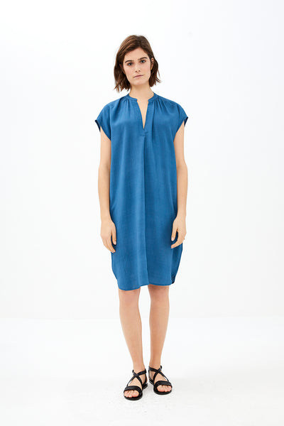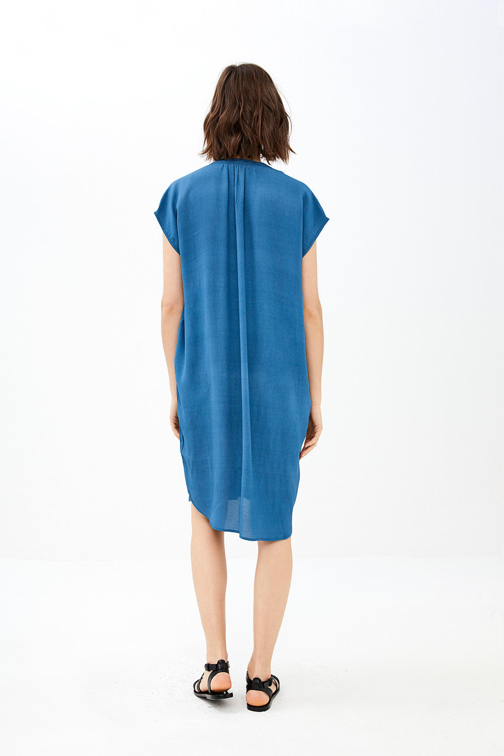 De victoria dress by Bay-Bar is gemaakt van een rijke viscose kwaliteit. De luchtige oversized jurk heeft een vrouwelijke v-halslijn en een korte vleermuismouw. De jurk is rond aan de onderkant, voorzien van een split en valt aan de achterkant wat langer dan aan de voorkant.