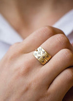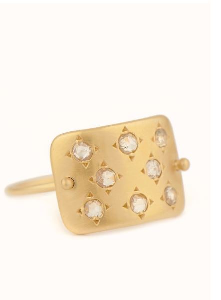 Céline Daoust 14kt light yellow gold diamond constellation plate ring with 8 rose cut diamonds.