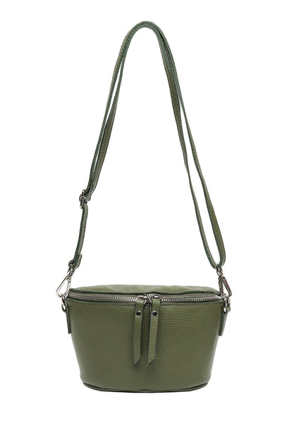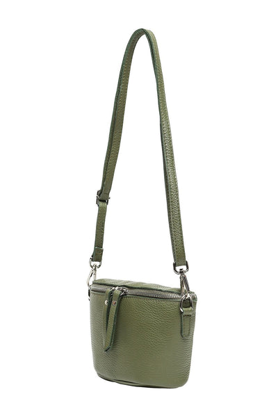 Emmanuelle crossbody bag, in grained cow leather. Adjustable, removable shoulder strap and interior zipped pocket. This bag is made in Italy.
