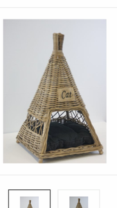 Cat house, cone-shaped, we named it Apache as an Indian house, a quite unique model, made of koboo rattan, very comfortable for your beloved cat.
