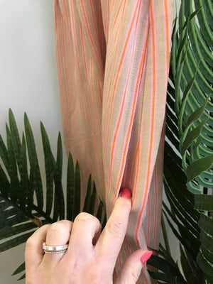 Relaxed beachy striped skirt with side pockets and elastic waist, very comfortable and perfect for summer. The length of the skirt is just over the knee.