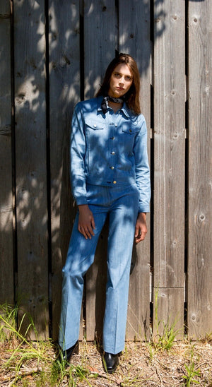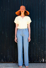 This model is an all-time FAM favourite. This beige jeans has a subtle flare and a high waistline for extra comfort. The front pockets are sewn in in such a way that they optically flatten the stomach.