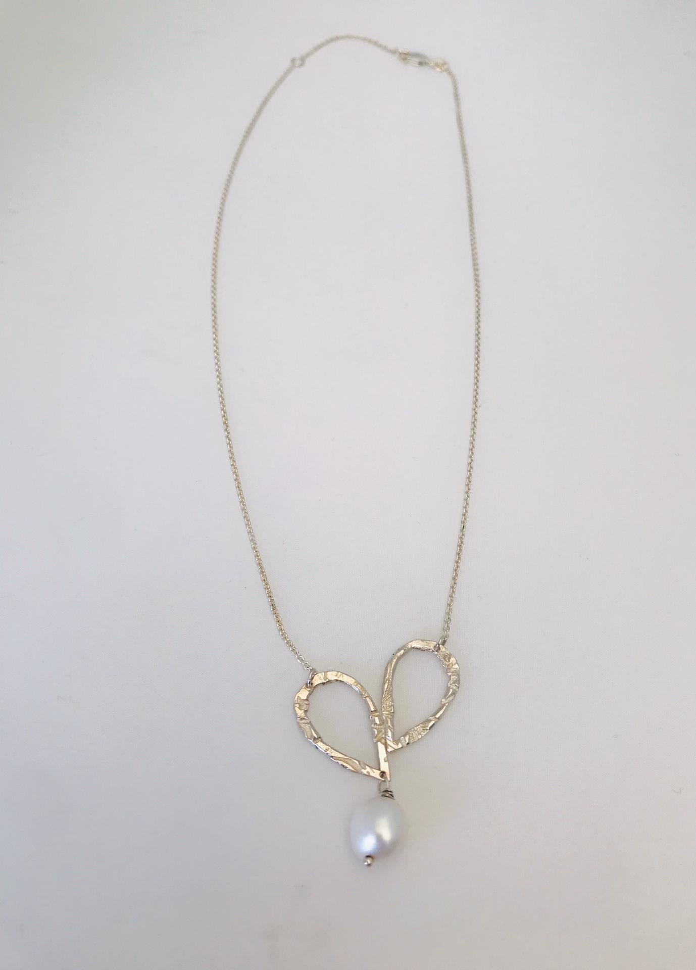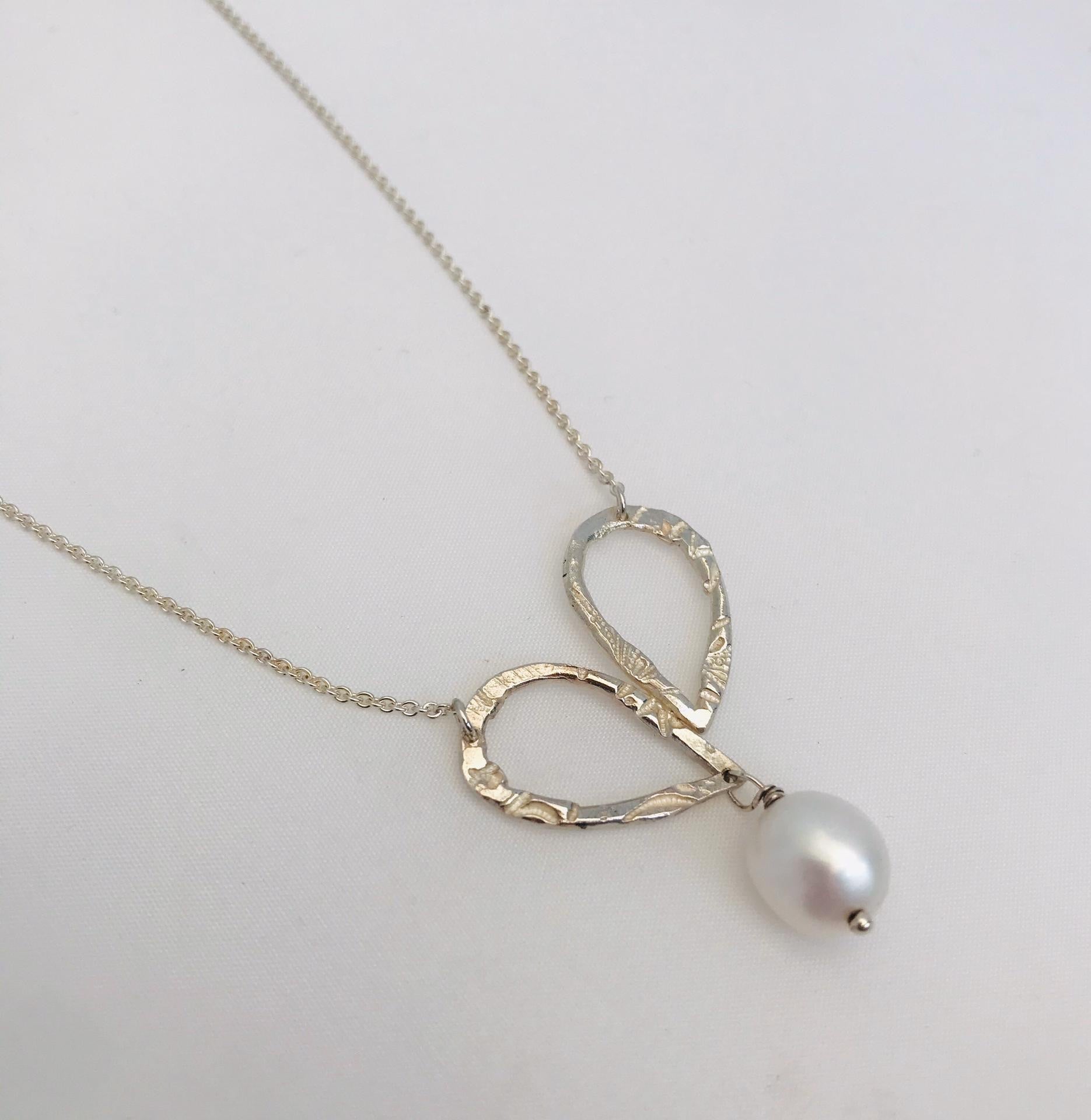 Elegant silver freshwater pearl necklace handmade by Lies Wambacq.