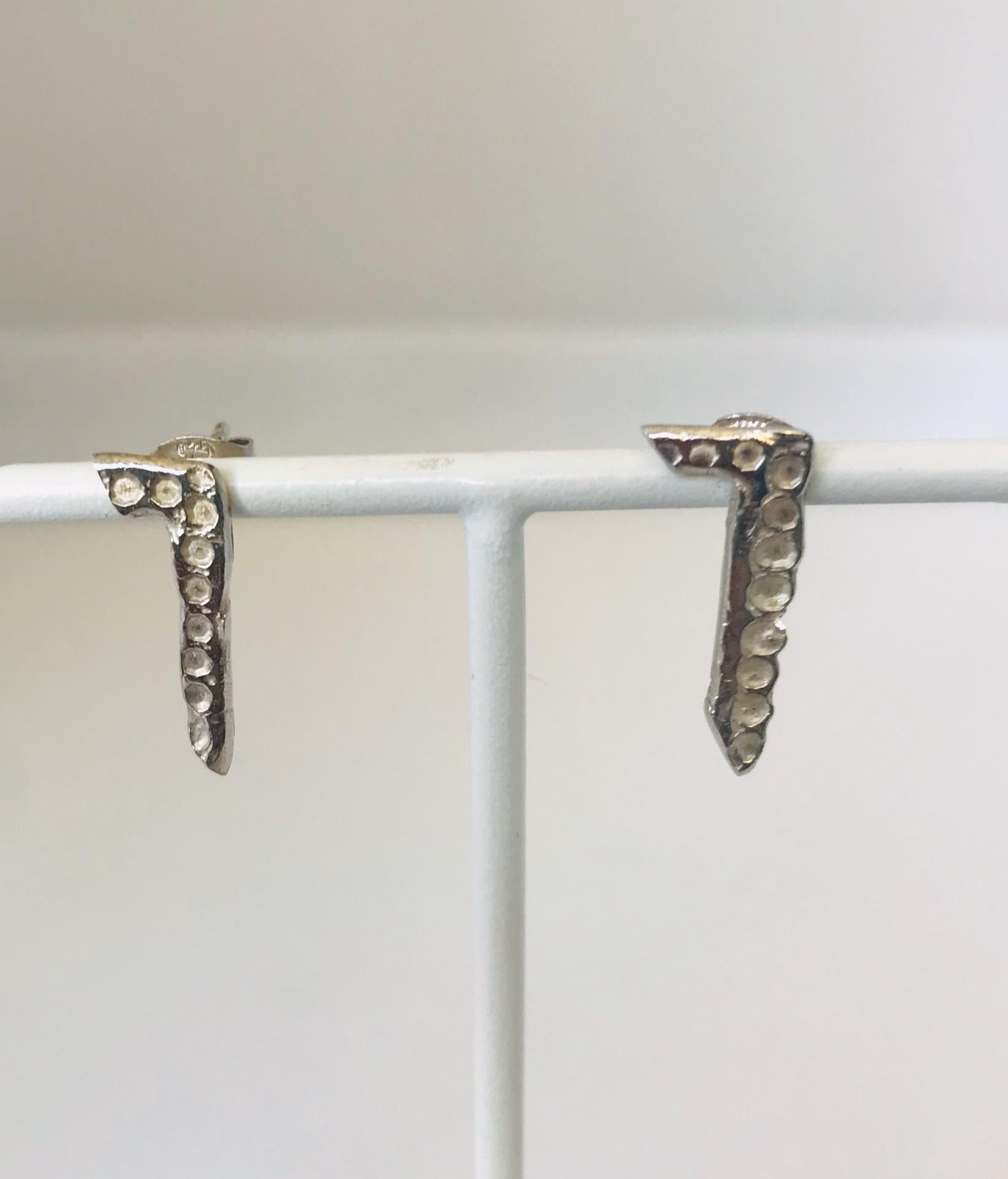Elegant silver slightly asymmetrical earring handmade by Lies Wambacq. The jewel is created by the 'lost wax technique'.