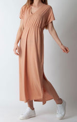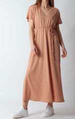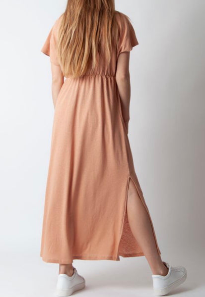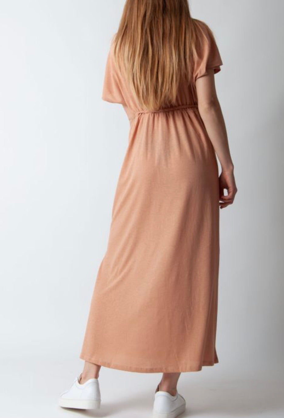The Diana ankle length dress by Maison Anje features a v-neck neck detail and split side. It also comes with a plait waist tie.