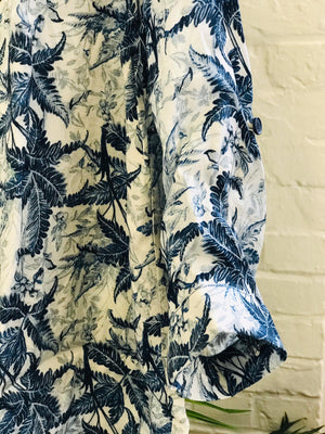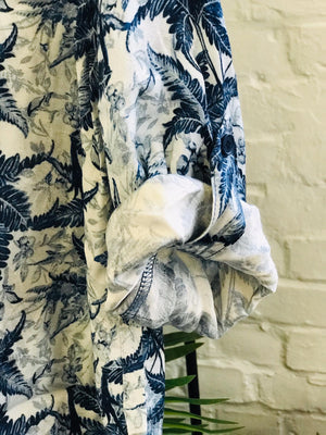 The idole shirt is a flower printed summer dress made by Maison Anje. It's a loose dress with short sleeves, small folds at the waist, wavy and a split at the bottom.