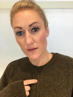 Cosy and gorgeous supersoft Levanves matcha knitwear pull made by Maison Anje. This super soft knitted jumper with a V neckline has long sleeves and relaxed shape.