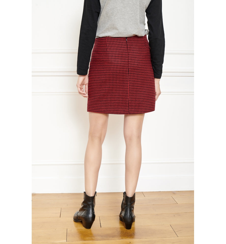 Short skirt with buttoned placket in very Sixties houndstooth wool. Fully lined.