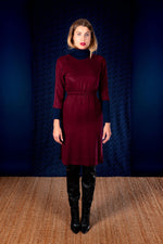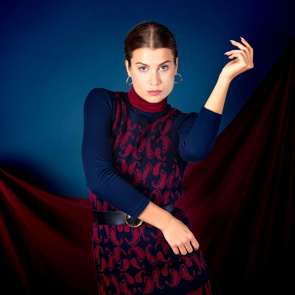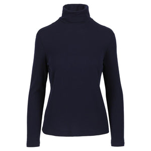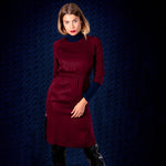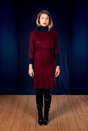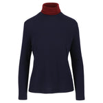 Very soft turtleneck in navy viscose, de inside of the collar is in burgundy so you can wear it in 2 ways. Perfect on pants or underneath a dress.