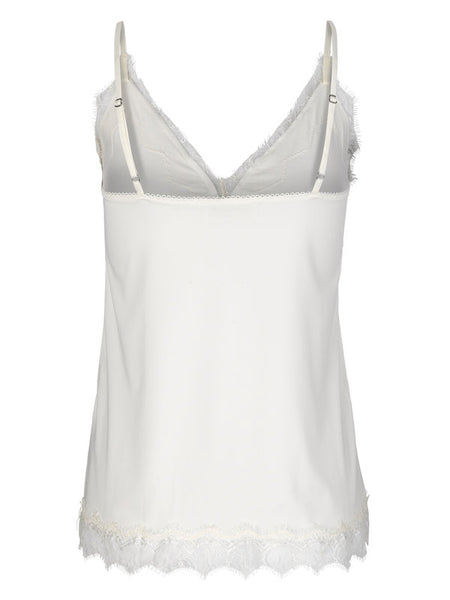 Lovely lace top with V-neck and adjustable straps. The popular top is designed with an elegant lace around the neckline and at the hem. Wear the top as it is or underneath a shirt or a blazer for a classy and feminine look.
