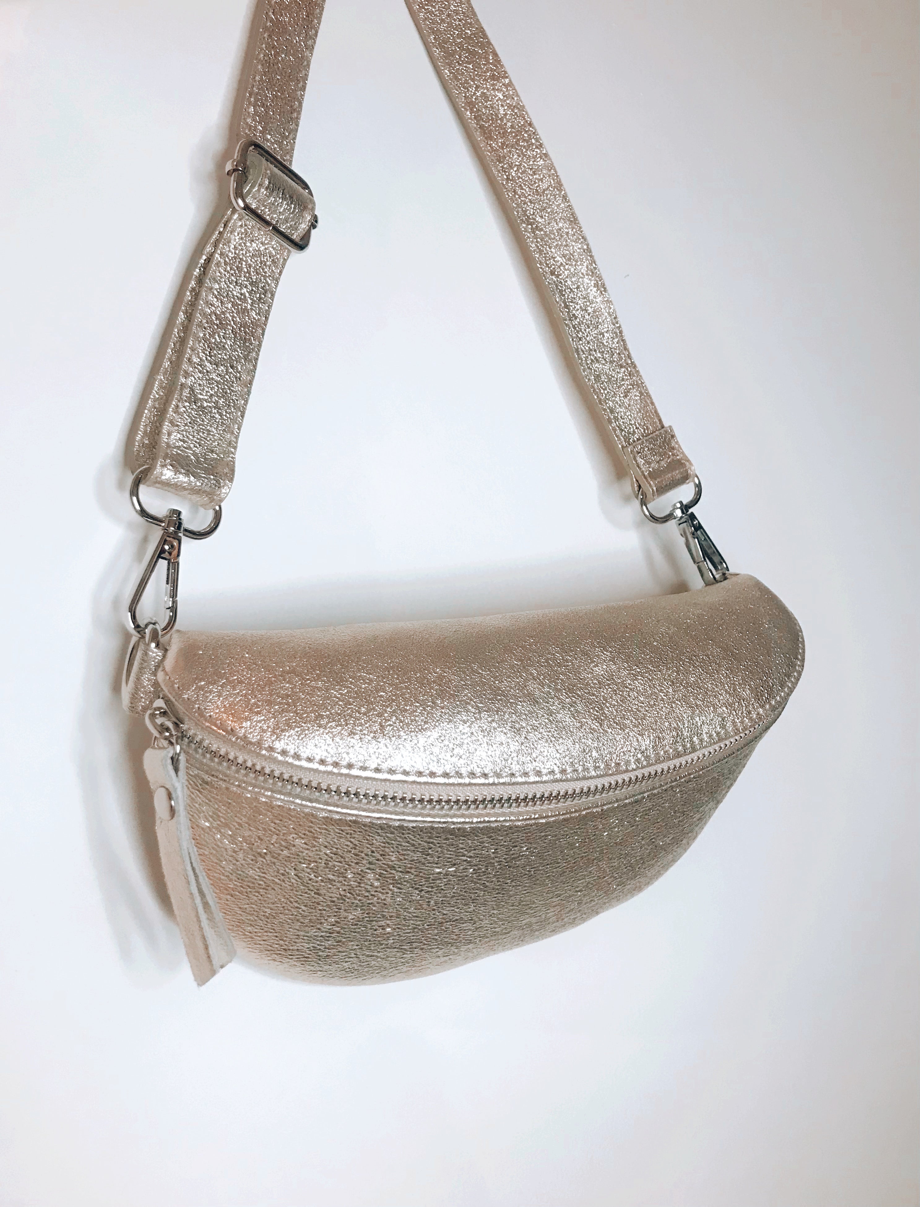 Super cute & elegant golden leather bumbag.
