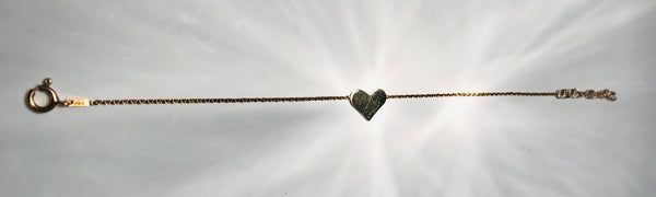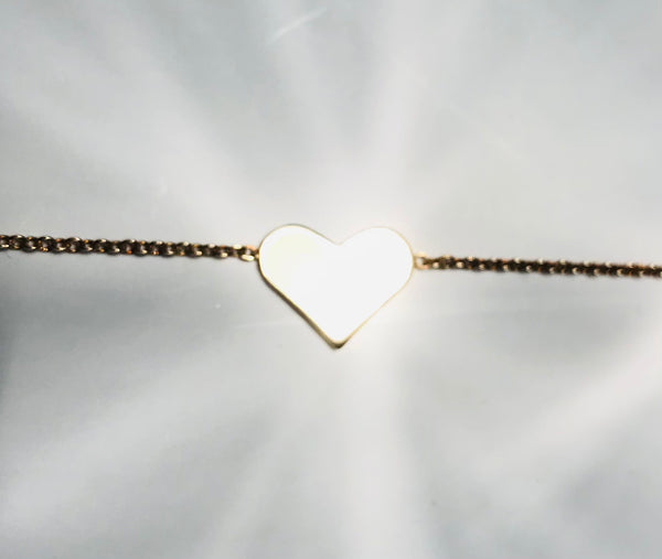 This elegant bracelet in goldplated Sterling silver has a beautiful shaped heart in the middle. Can be worn alone or combined with other subtle bracelets.