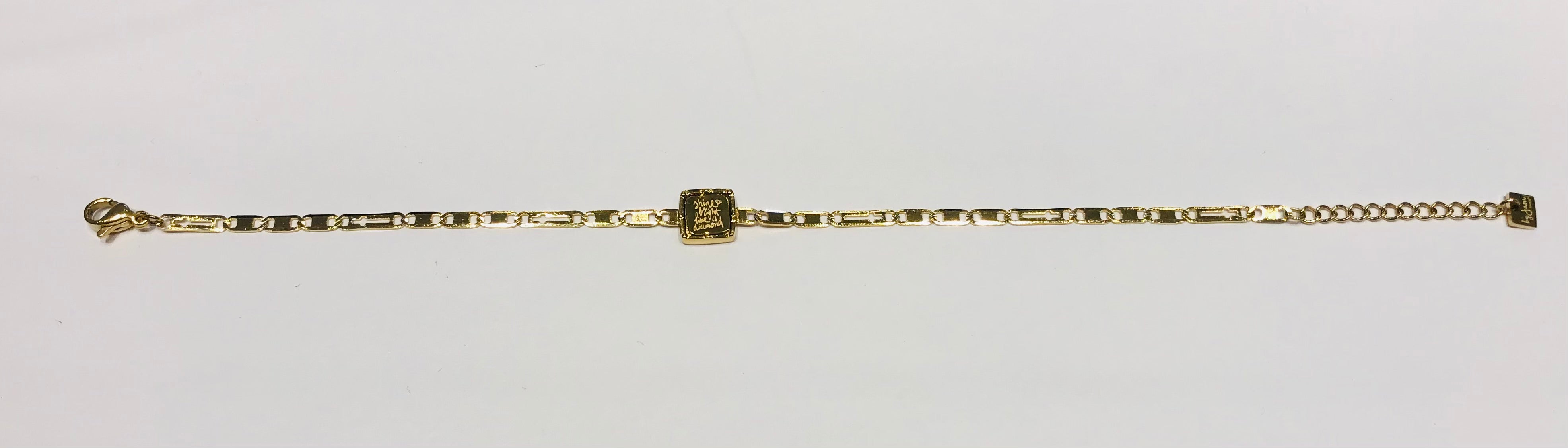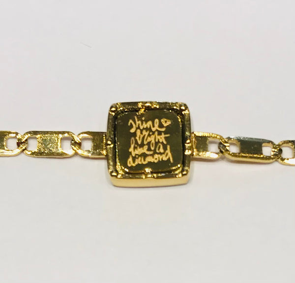 This goldplated bracelet with special chain has a square engraved element in the middle: shine bright like a diamond.