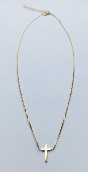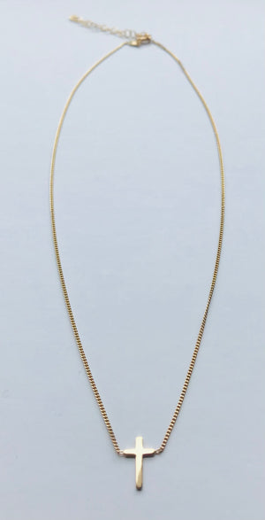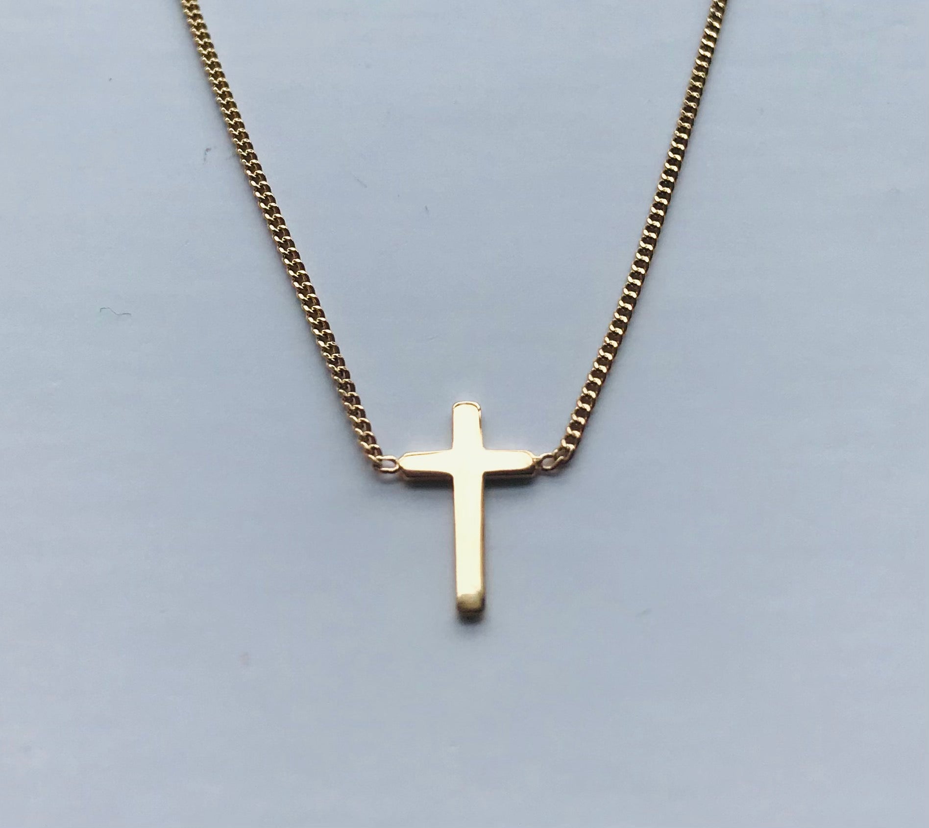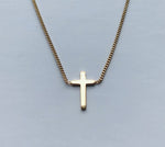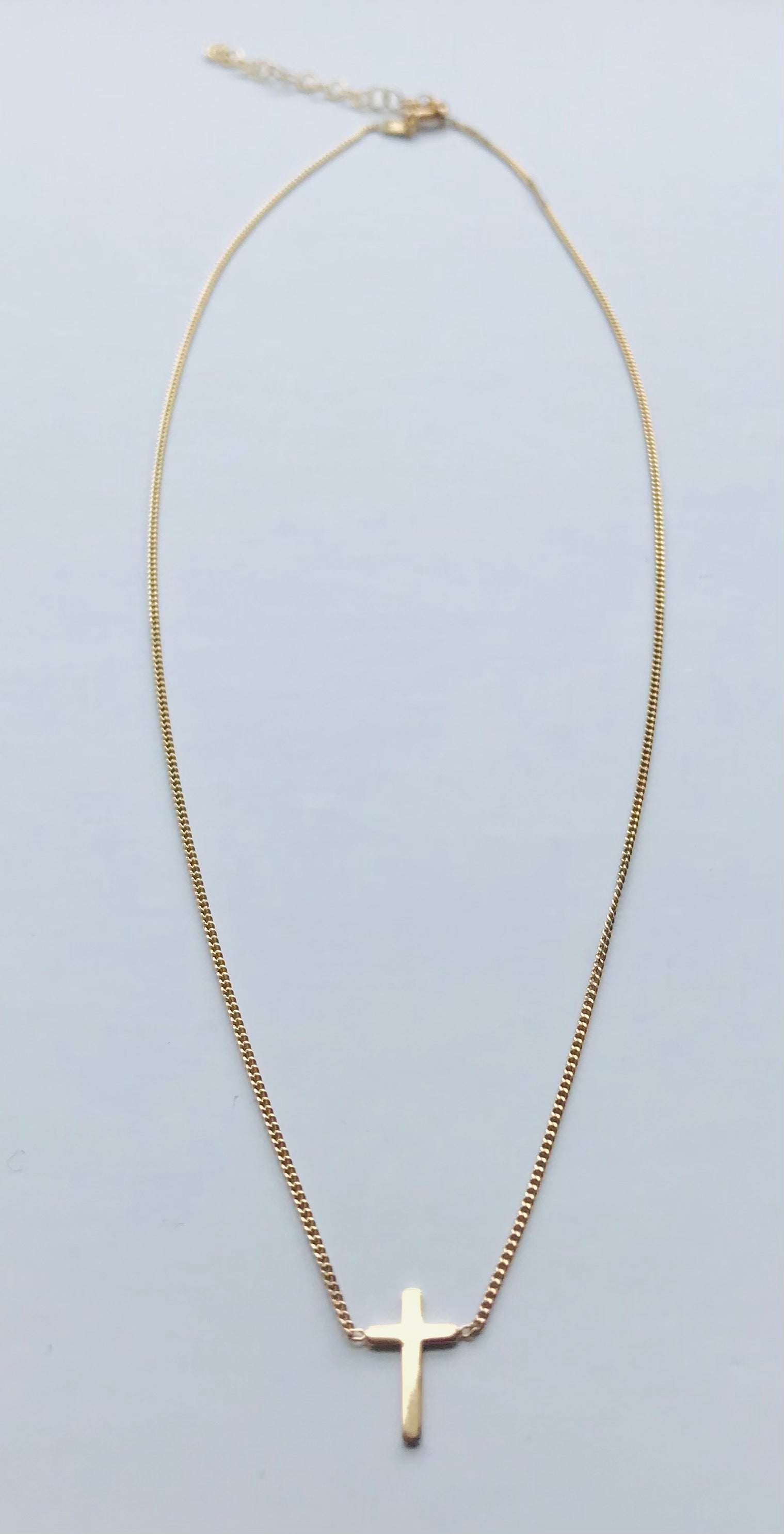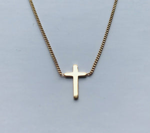 This goldplated Sterling silver necklace has a little cross in the middle. Very subtle to wear alone or combined.