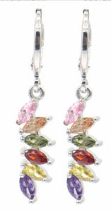 Elegant long silver Earrings with small creoles and multi color Zirconia