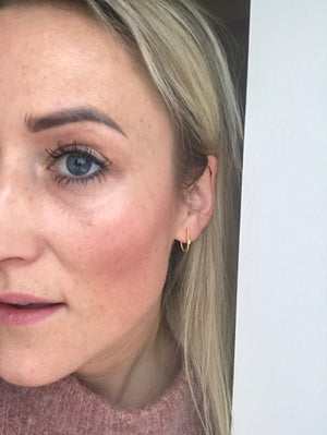 Elegant and fine goldplated hoops with zirconia in a square shape.