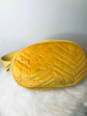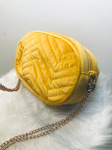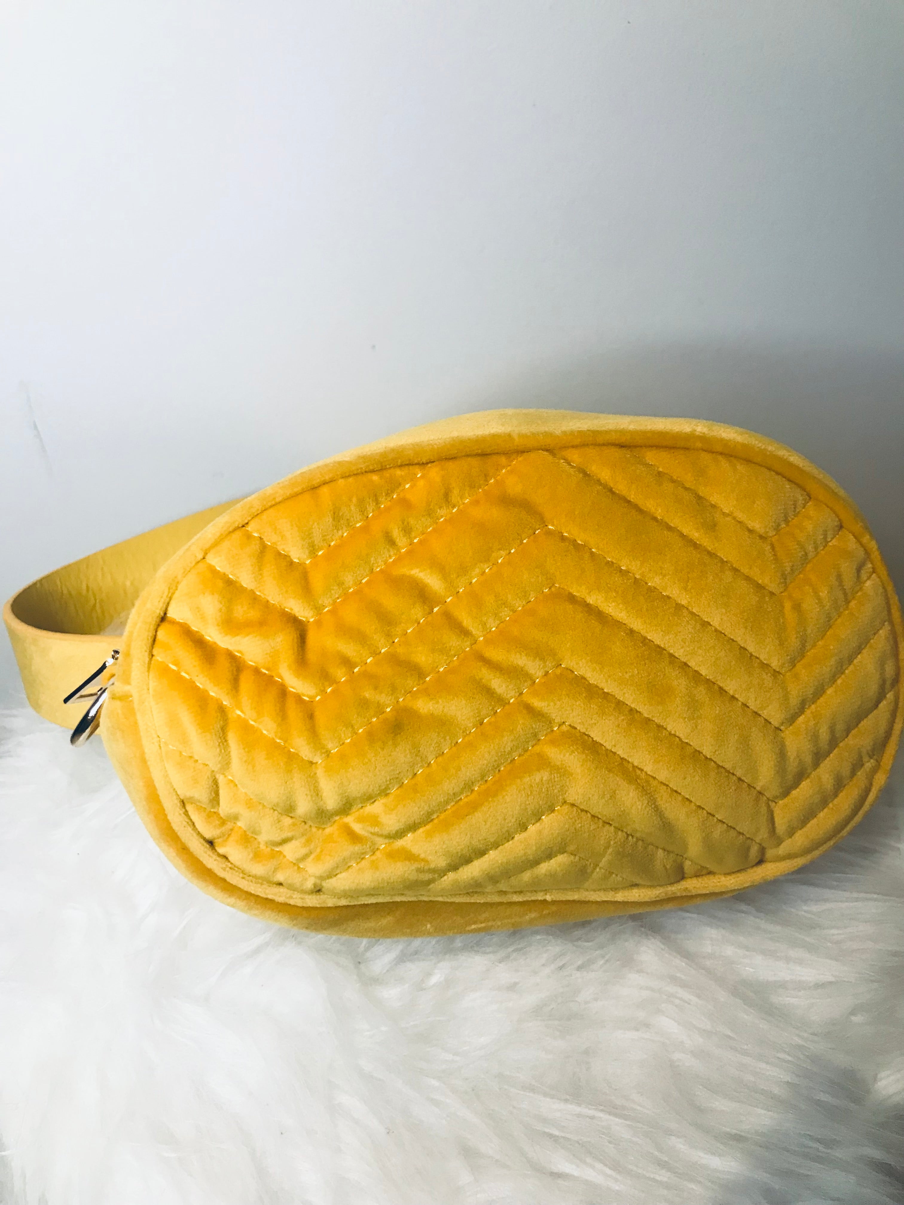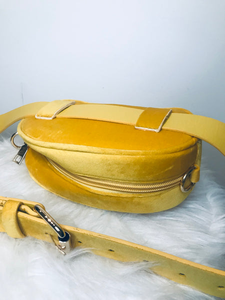 A golden chain so you can wear it as a handbag or a belt to use it as a bumbag