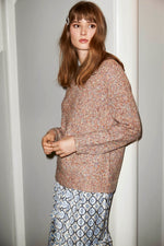 Pella knitted pullover by Unmade with shimmer thread, rib at the neckline, cuffs and at the bottom.