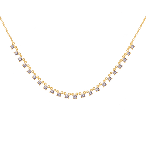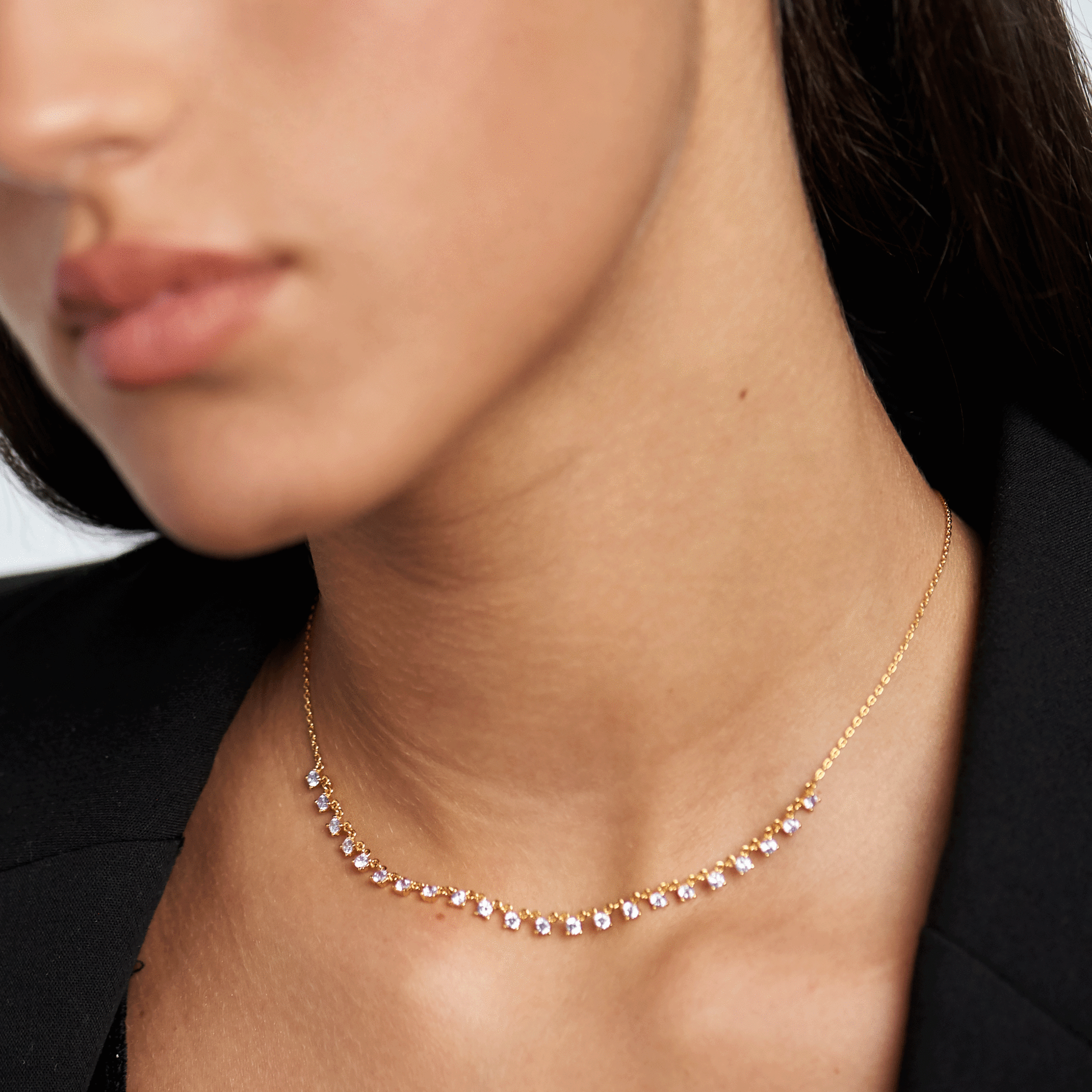 The Victoria Necklace stands out with its cascade of Lavender Zirconias: made of 925 Sterling Silver plated in 18k Gold, its design merges the masculine with the feminine. Imbued in an opulent and warrior-esque atmosphere, Cavalier arises as the new, simplified Baroque.