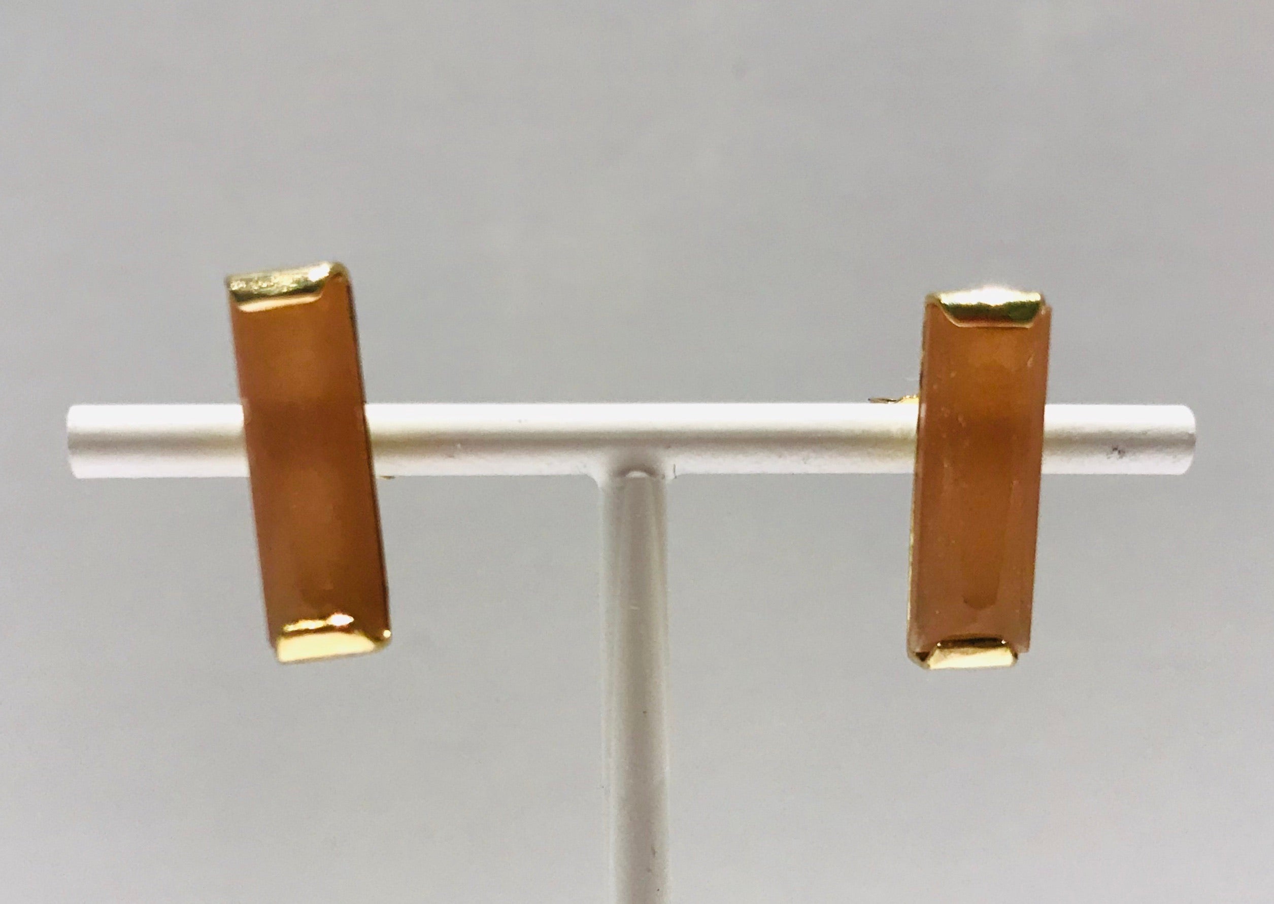 Long goldplated earrings with sunstone. The earrings are 1,5 cm long and 0,5 cm wide.