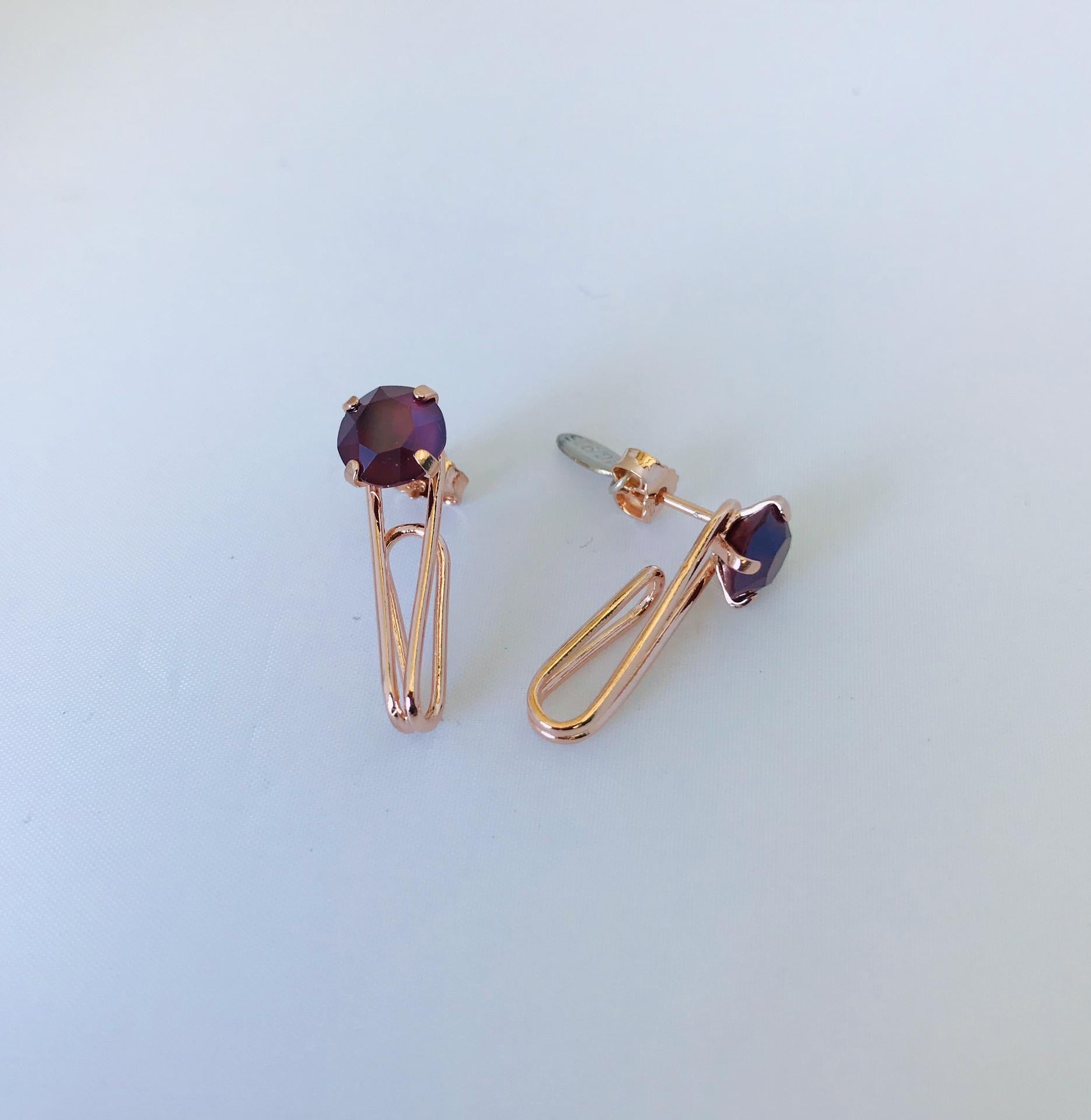 Let your accessories do the talking with this gold plated silver, silver or pink gold plated earrings with purple crystal stone by Wouters & Hendrix.
