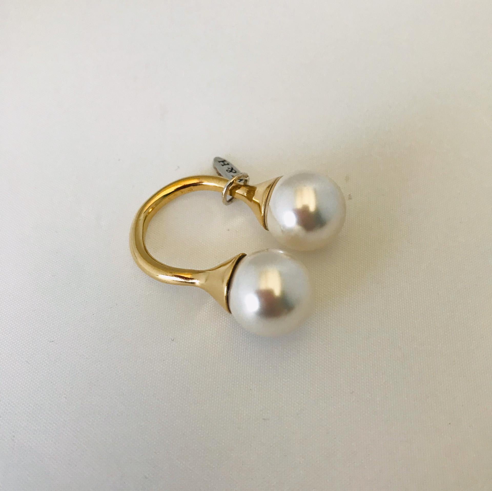 Let your accessories do the talking with this gold plated ring with 2 crystal pearls by Wouters & Hendrix.