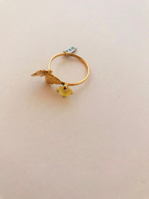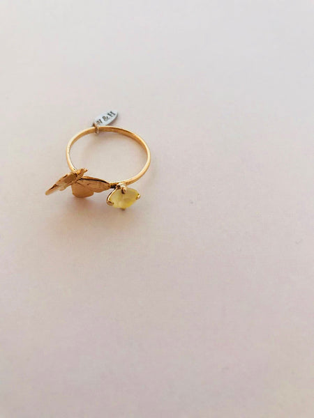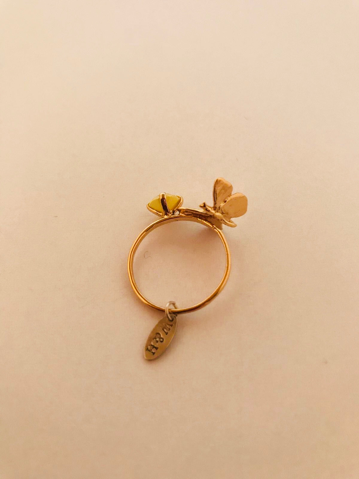 This gold plated silver butterfly-ring is made of yellow crystal and Sterling silver. It’s a cute playful ring.