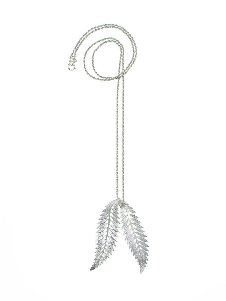 Let your accessories do the talking with this long silver necklace with leaves by Wouters & Hendrix.