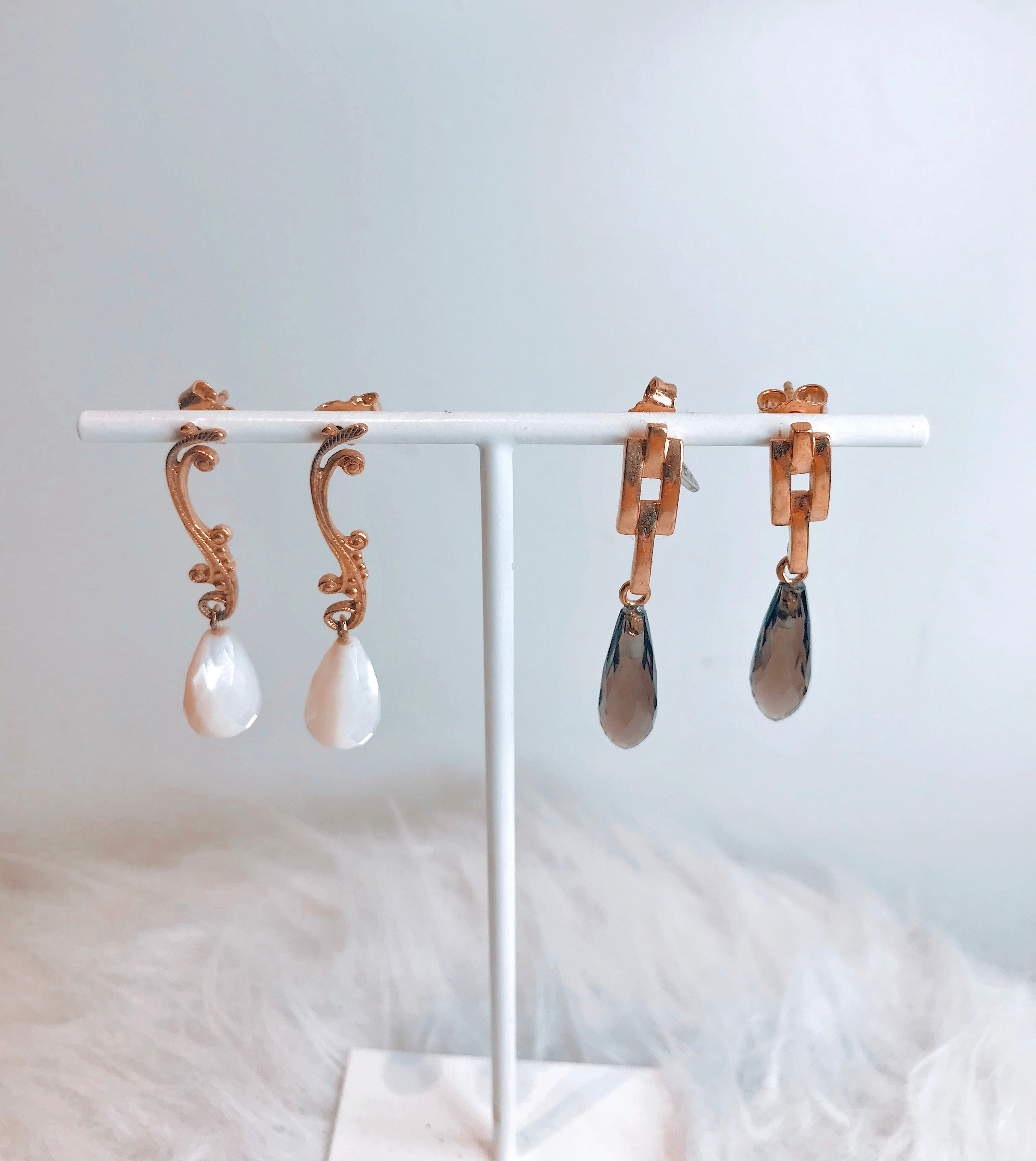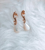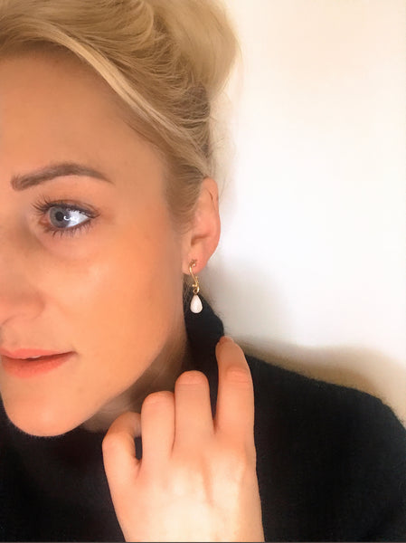 Very elegant long goldplated stud earrings with gemstones (pearls).They are handmade in Antwerp by the talented Wouters & Hendrix.