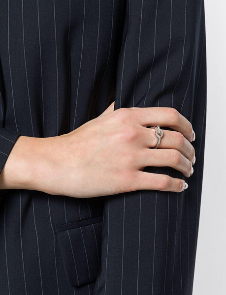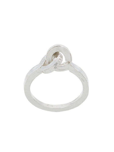 This sterling silver Technofossils hammered ring from Wouters & Hendrix features a hook detail and a thin band.