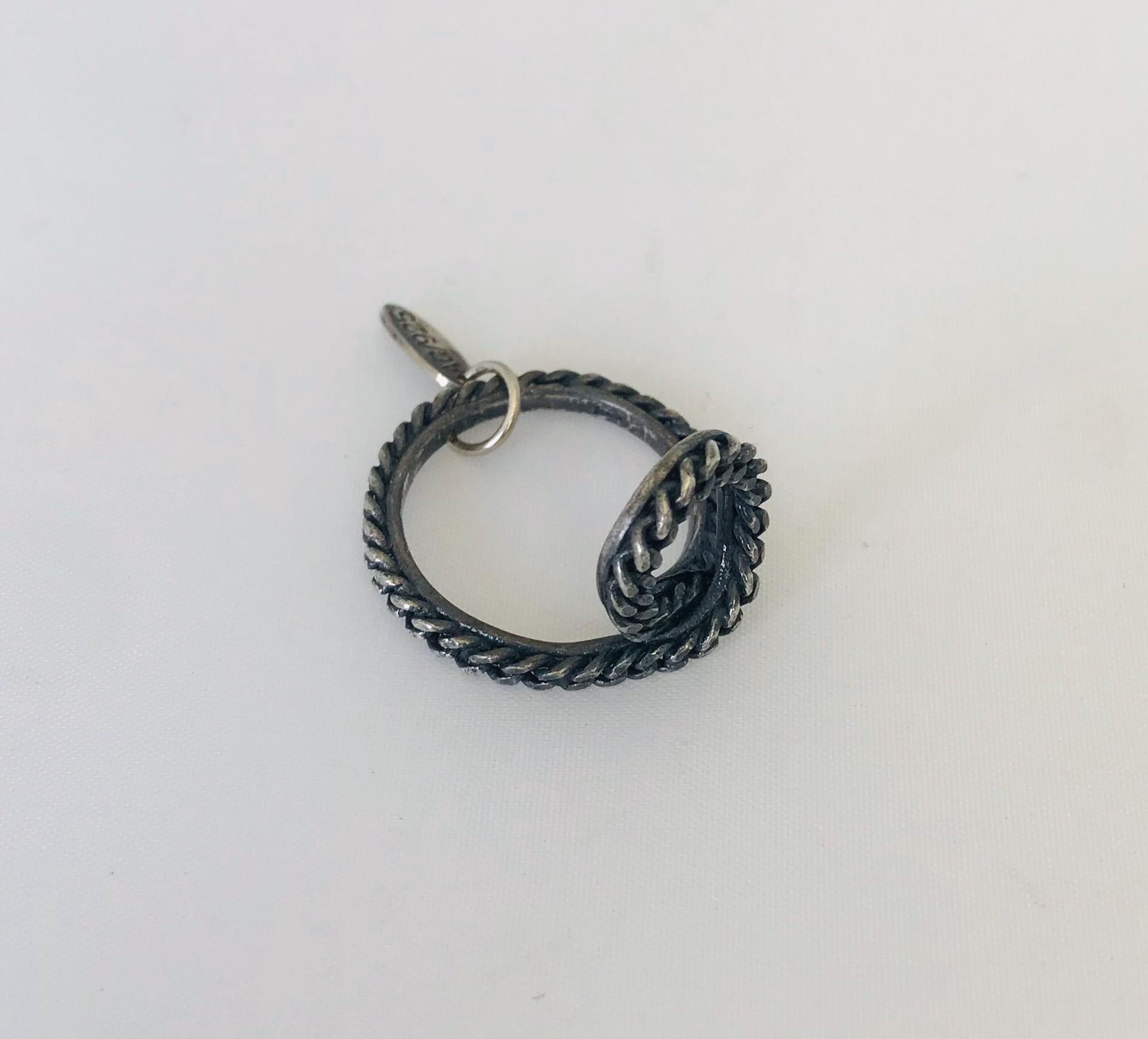Let your accessories do the talking with this oxidized silver ring with loop and pattern by Wouters & Hendrix.