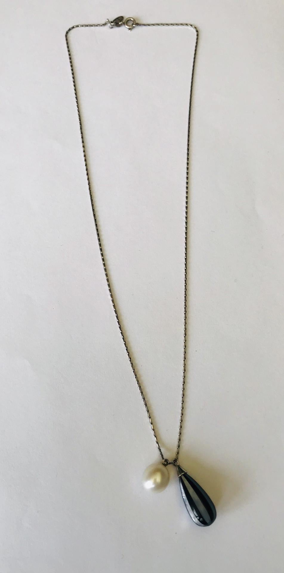 Let your accessories do the talking with this silver necklace with pearl and onyx mother of pearl by Wouters & Hendrix.