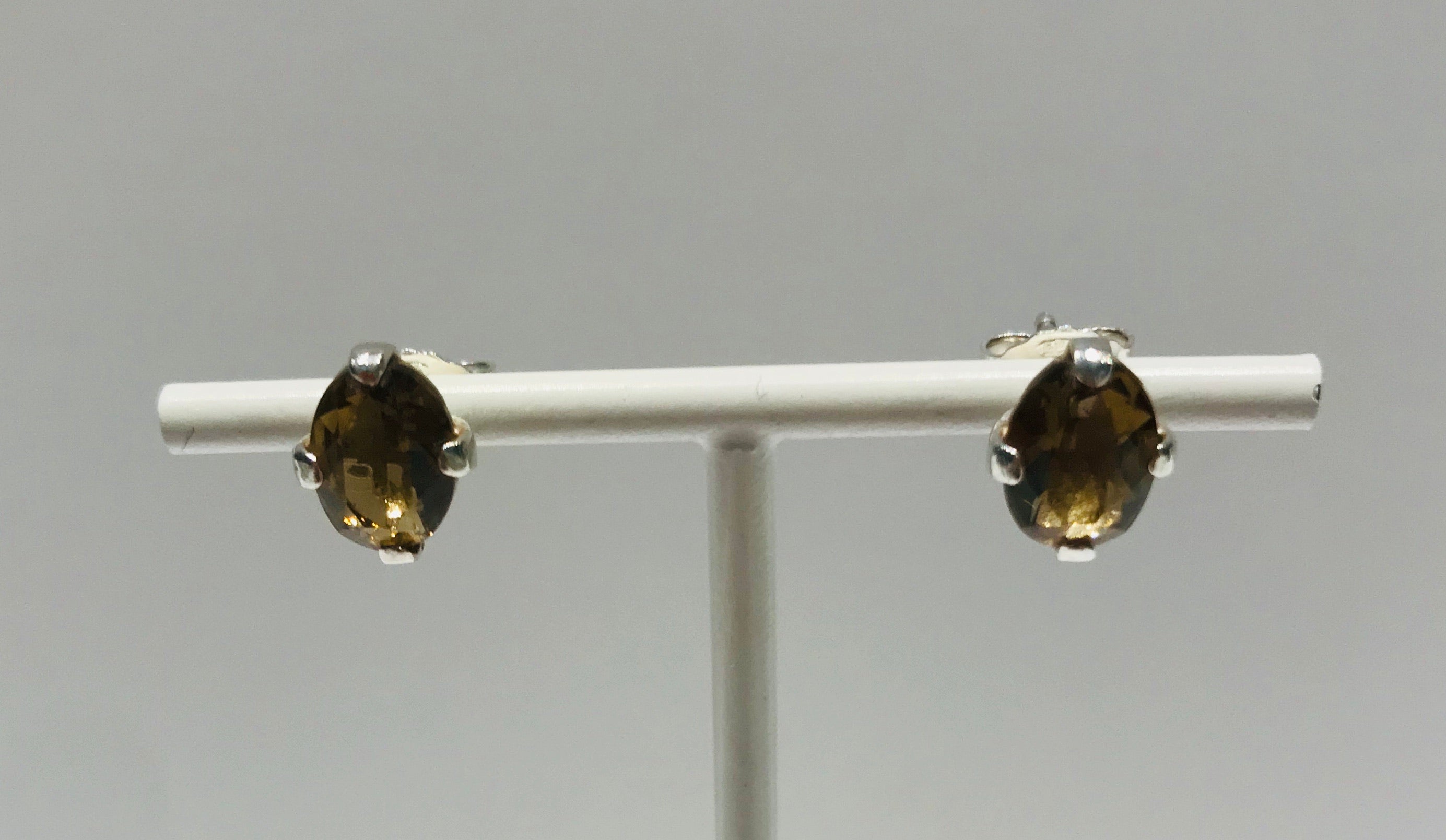 These Sterling silver earrings have faceted Brown smoky quarts stones in a beautiful setting.